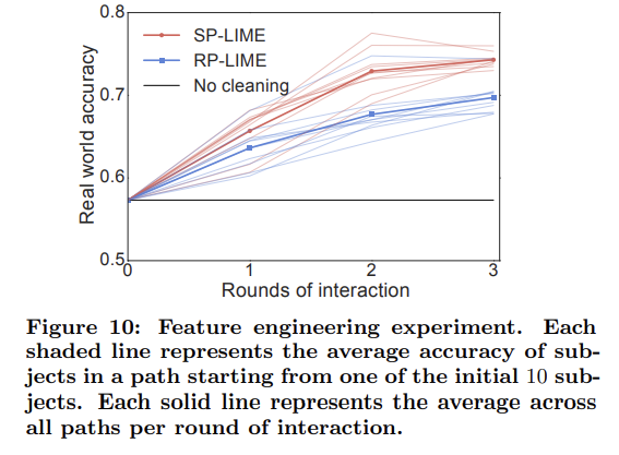 - 특히 SP-LIME은 같은 시간 안에 더 다양한, 중요한 feature를 보여주기 때문에 모델 개선 효율이 훨씬 높았다.