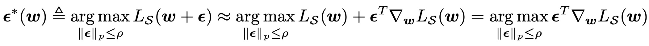 이는 직관적으로 손실을 가장 악화시키는 파라미터 교란 \epsilon을 찾는다고 볼 수 있다.