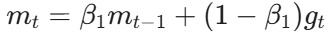 - 1차 모멘트 (m_t): 기울기의 평균을 추정한다. (Momentum과 유사)
