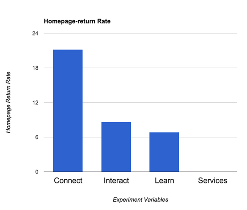 Help 혹은 Service 탭인 홈페이지는 Learn, Connect, Interact에 비해 웹사이트에서 클릭이 증가할 것이다.