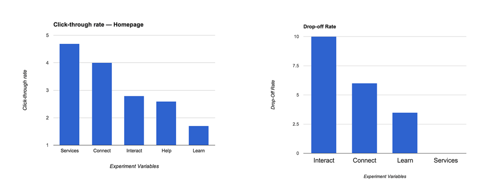 이 사례 연구는 웹사이트 기반 A/B테스트에 중점. google 애널리틱스, Crazy Egg를 통해 실험 진행. 목표는 어떤 Category 제목이 더 깊은 접속을 유도하는지 파악. 홈페이지 클릭률, 카테고리 페이지 이탈률, 카테고리 페이지의 홈페이지 재방문율의 3가지 측정지표를 사용