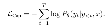 Text 전체를 하나로 encode하는 dual-encoder와 다르게 Captioner 방식은 text를 토큰 단위로 정확하게 순차적으로 예측할 수 있게 합니다. image encoder은 image의 잠재적인 특징을 추출해서 제공합니다. 그 후 text decoder은 주어진 image와 지금까지 쓰인 text들을 바탕으로 다음 단어가 출력될 수 있는 확률을 최대로 높이는 방향으로 학습을 진행합니다. encoder-decoder은 학습 효율을 위하여 teacher-forcing 기법을 사용합니다. 이전과 다르게 encoder-decoder은 joint image-text representation을 생성하여