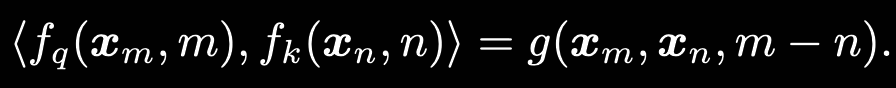$\langle f_q(x_m,m), f_k(x_n,n) \rangle=(W_q x_m)e^{im\theta} \cdot \left((W_k x_n)e^{in\theta}\right)^*$
