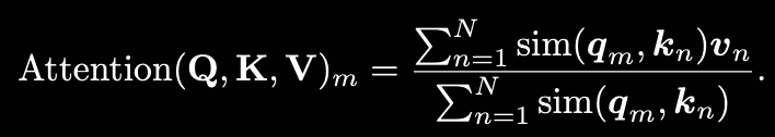 이를 통해서 모든 토큰 쌍에 대해서 query와 key 내적을 하는 것이 아니라, key와 value의 내적의 합을 전부 계산한 후 마지막으로 query와 한 번만 내적하면 되므로 계산 효율성이 O(N)이 됨.