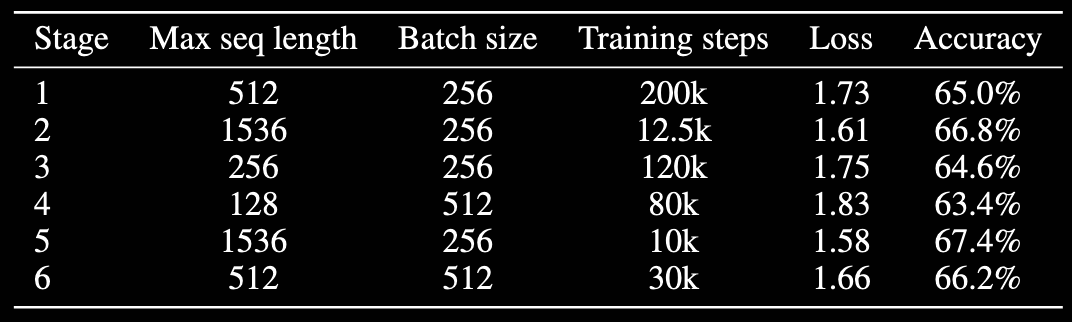 학습 중 Masked Language Modeling(MSM) loss를 평가 지표로 삼음.