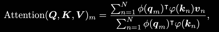 이를 통해서 모든 토큰 쌍에 대해서 query와 key 내적을 하는 것이 아니라, key와 value의 내적의 합을 전부 계산한 후 마지막으로 query와 한 번만 내적하면 되므로 계산 효율성이 O(N)이 됨.