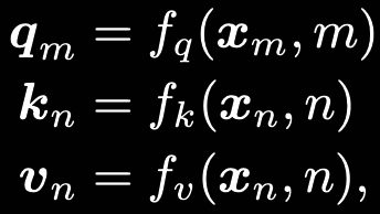 쿼리와 키의 내적은 다른 위치에 존재하는 토큰 간의 정보를 담을 수 있게 한다. 이때, 상대적인 위치 정보를 포함하려면 쿼리와 키의 내적이 내용 임베딩 $x_m$과 $x_n$, 상대 위치 $m-n$만을 입력 변수로 갖는 함수 g로 구성되어야 한다.