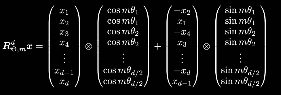 $W_qx_m$은 projected 내용 임베딩, $e^{im\theta}$는 위치에 따른 복소수 회전