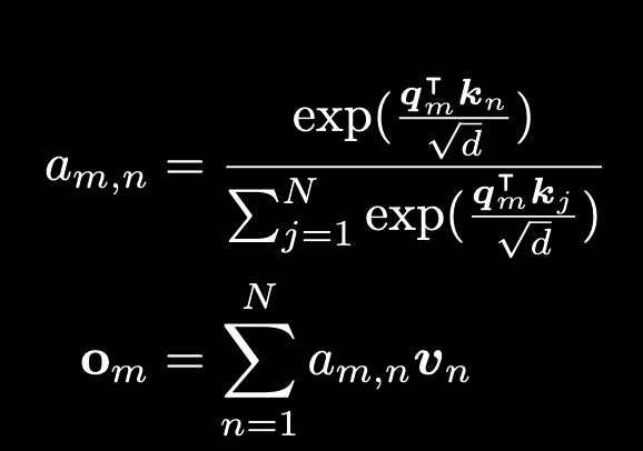 이후에 쿼리, 키, 벨류를 이용하여 attention weights를 계산하고, output은 value 벡터들에 대해 가중치를 곱한 가중합으로 표현된다.