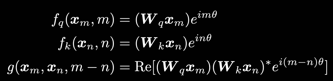 $\langle f_q(x_m,m), f_k(x_n,n) \rangle=(W_q x_m)e^{im\theta} \cdot \left((W_k x_n)e^{in\theta}\right)^*$