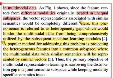 서로 다른 feature vector를 가지는 multi-modal의 specific semantic을 유지하며 heterogeneity gap(멀티 모달의 이질성의 차이)을 줄이는 것