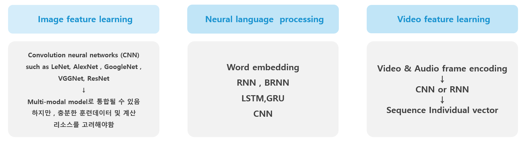- 각 모달리티에 적합한 아키텍쳐를 갖추고 있다.