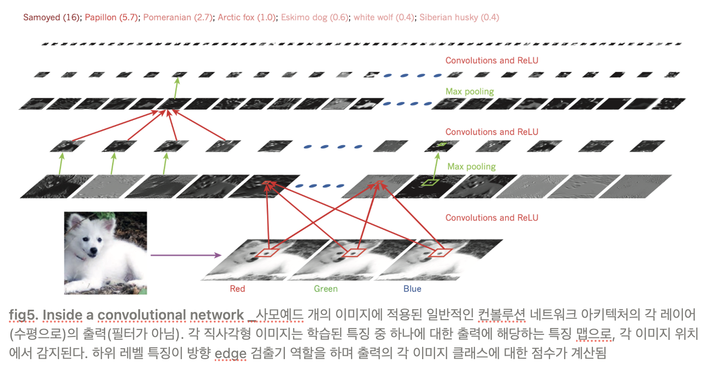 - ex) 깊이가 5~20인 여러 비선형 레이어를 사용하면 시스템은 사모예드와 흰 늑대를 구별하는 미세한 세부 정보에 동시에 민감하고 배경, 포즈, 조명 및 주변 물체와 같은 큰 관련 없는 변형에도 둔감한 입력의 매우 복잡한 기능을 구현할 수 있다.