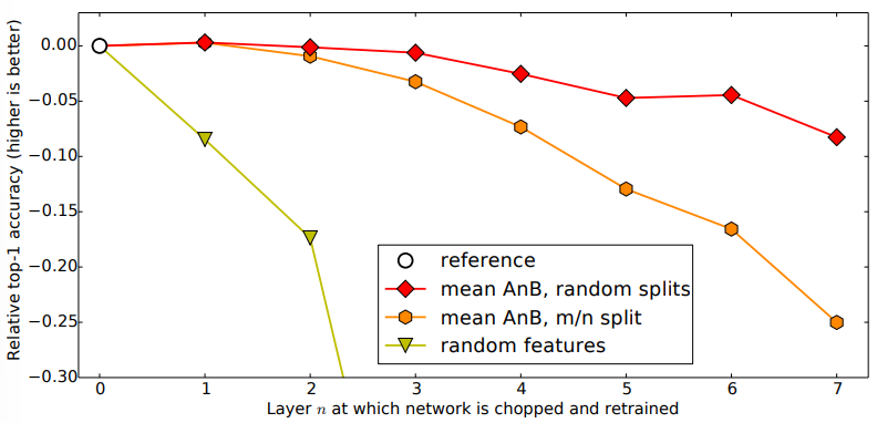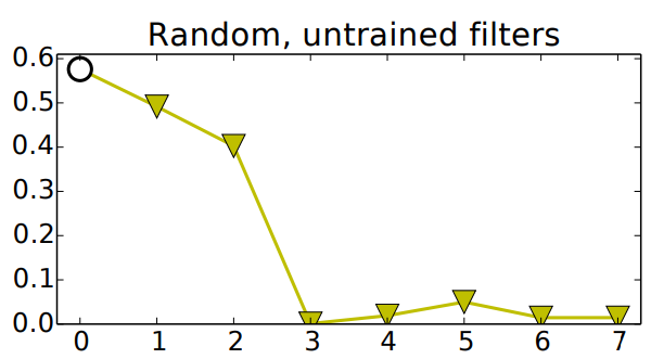 - 다양한 n개의 선택 → 처음 n개의 레이어에 대해 random filters를 사용할 때 얻은 accuracy