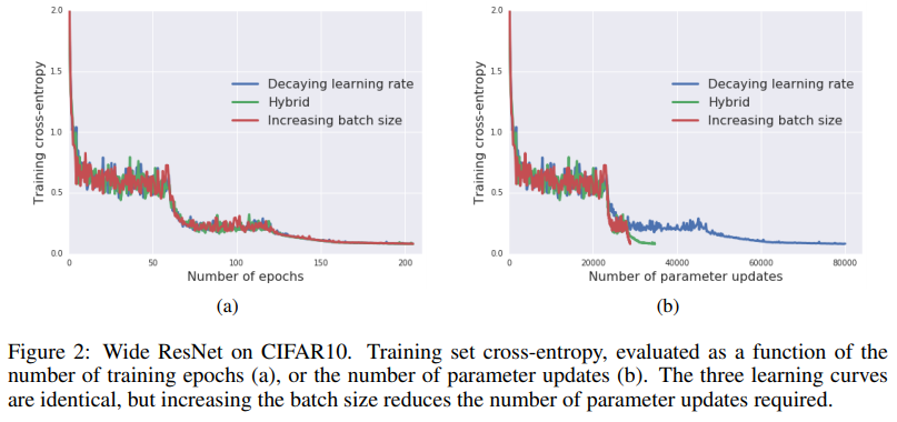 - 일반적으로 학습률을 감소시키는 대신 훈련 중에 배치 크기를 증가시키는 방법을 제안했다.