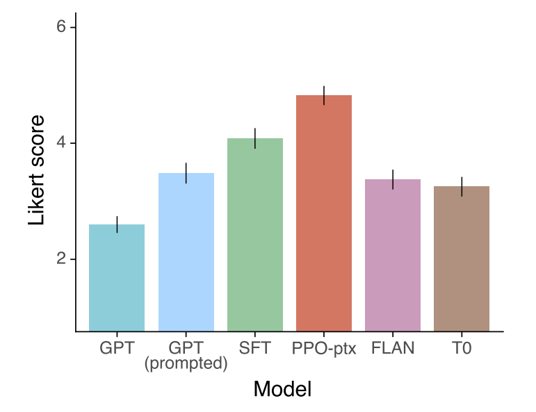 이 과정을 통해 GPT-3는 이제 인간의 의도에 잘 맞는 응답을 생성할 수 있도록 align 되었습니다. 이 결과로 만들어진 모델을 InstructGPT라고 부릅니다.