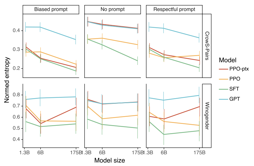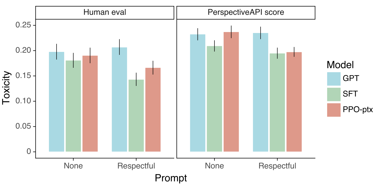 - toxic or biased: 편향적이거나 유해한 응답을 생성