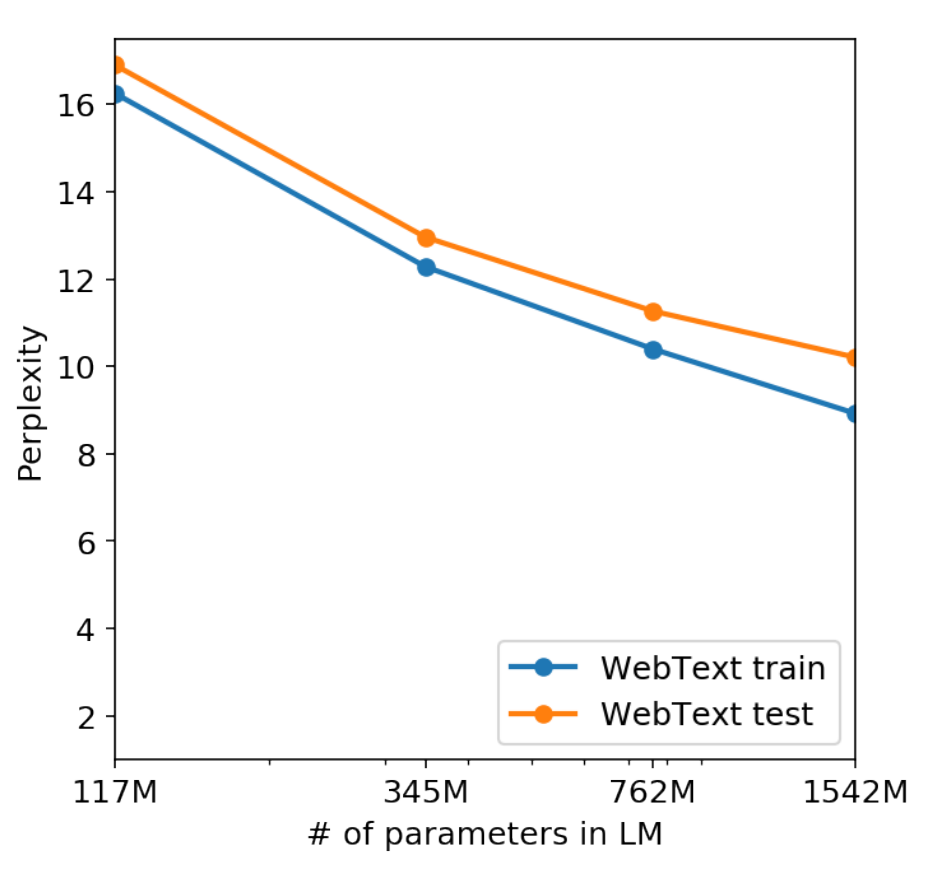 그리고 저자는 언어 모델이 충분히 큰 규모를 갖춘 상태에서 대규모 데이터를 학습하면 다양한 태스크를 수행하는 일반화된 능력을 갖출 것이라고 생각했습니다. 약 1.5B의 파라미터를 갖는 GPT-2는 실제로 그러했고, zero-shot 환경에서 unsupervised multitask learner로써의 역할을 잘 수행했습니다.