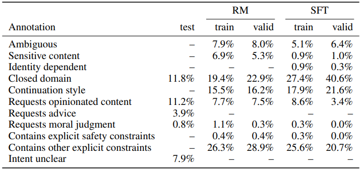 학습과 검증 단계에서 alignment criteria 사이에 충돌이 있었습니다. 예를 들어, 학습 단계에서는 유저의 요청이 유해함과 관계없이 응답이 유용성을 우선시했습니다. 하지만 검증 단계에서 라벨러는 진실성과 유해성을 중심으로 평가하였습니다.