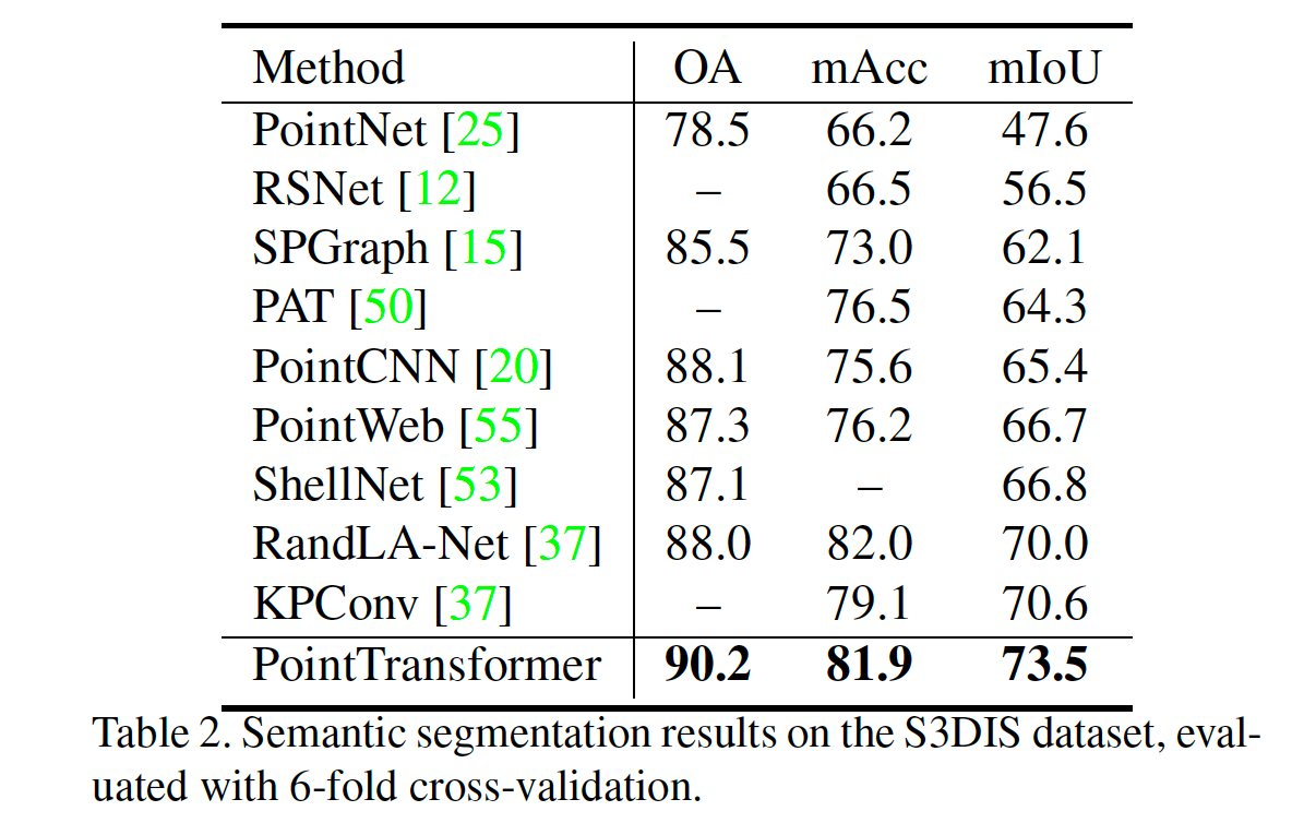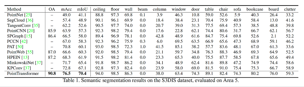 이번 연구에서는 self-attention을 local끼리만 적용했고, vector attention을 적용하여 더 높은 정확도를 얻을 수 있었다. 또한, 적절한 position encoding을 적용하여 좋은 결과를 얻었다.