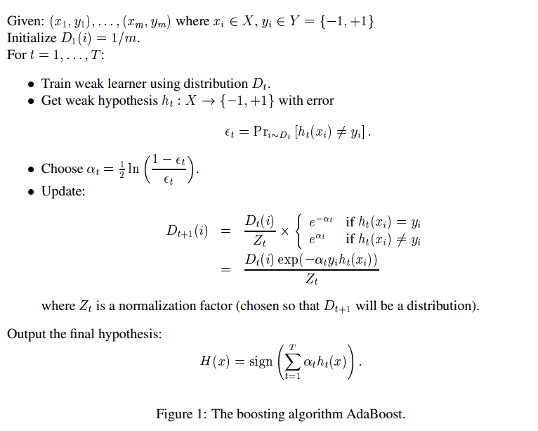 - t시점에서의 training example i의 분포 weight를 D_t(i)라 함.