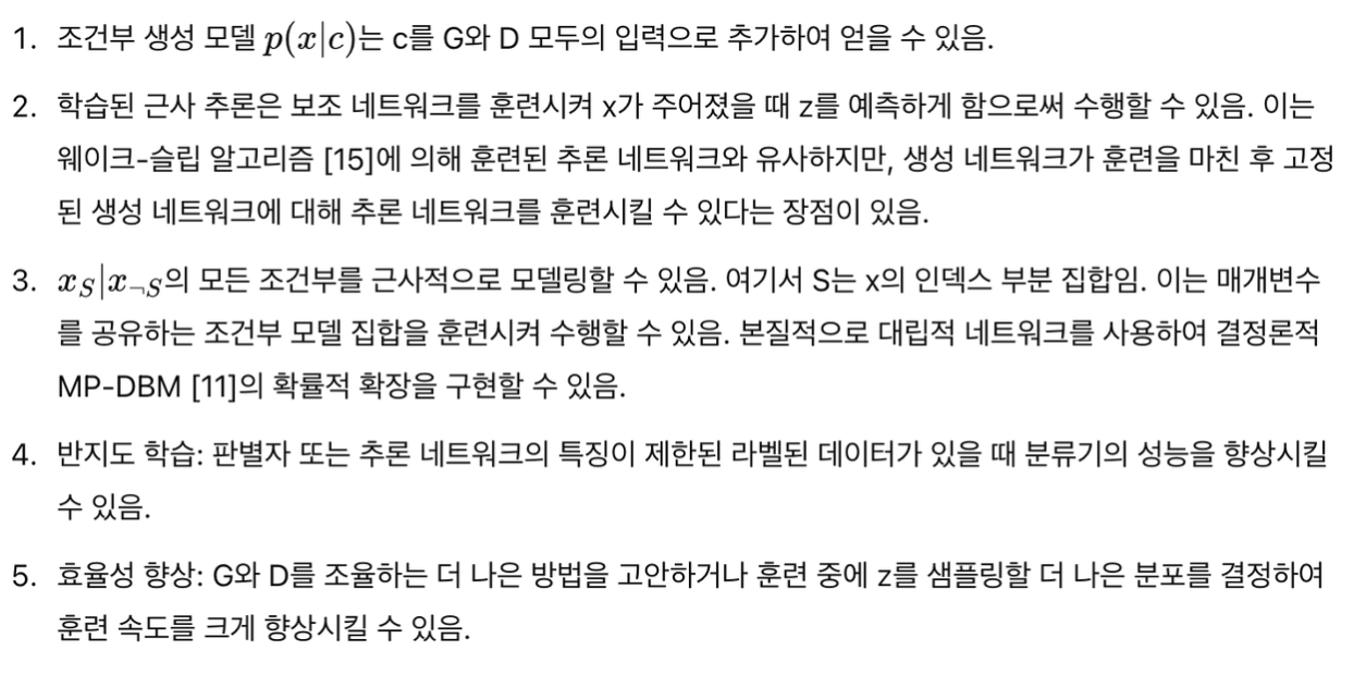 • maximum likelihood estimation과 관련된 많은 부정확한 확률 계산을 근사하는 것에 대한 어려움과 linear units의 장점 활용에 어려움이 있었음 ⇒ 본 논문에서는 이러한 어려움을 개선할 수 있는 새로운 generative model 추정 절차(adversarial nets framework)를 제안
