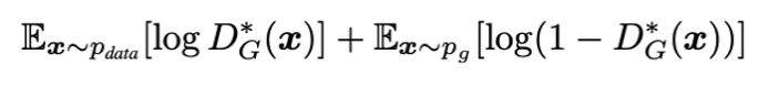 • Proposition 1. $G$는 고정되어 있고, optimal discriminator $D$가 다음과 같을 때