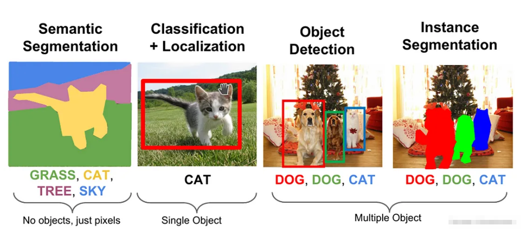 이번 포스팅은 객체를 인식하는 방법 중 하나인 U-Net의 업그레이드 버전인 U-Net++ (Nested U-Net) 논문을 살펴보겠습니다. 객체를 인식하는 방법에는 아래 그림과 같이 크게 Image Classification, Detection, Segmentation로 세 가지가 있습니다.