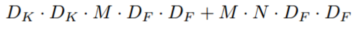 D_K는 입력값 크기, M은 입력의 채널수, D_F는 피처맵의 크기 입니다.