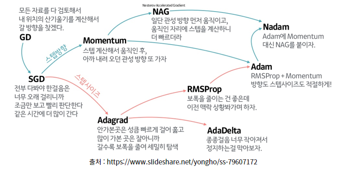 NAG는 momentum을 통해 빠르게 parameter를 업데이트해 가면서, 제동 시점에서는 Gradient의 영향력을 높여 그 변화량을 줄임으로써 minimum을 찾기 위한 향상된 알고리즘이라고 볼 수 있다.
