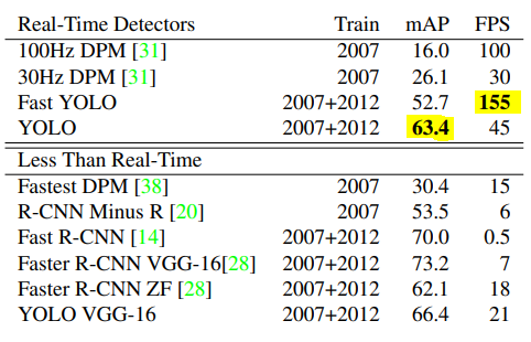 YOLO는 real-time 처리가 가능하며 성능이 매우 높다.