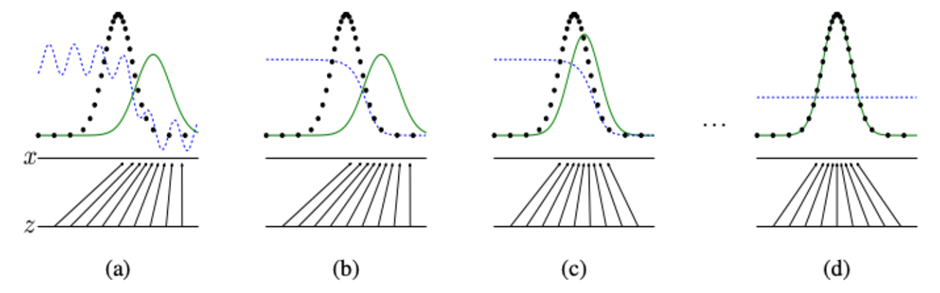 - 매우 sharp 하고 degenerate 한 분포도 학습이 가능하다.