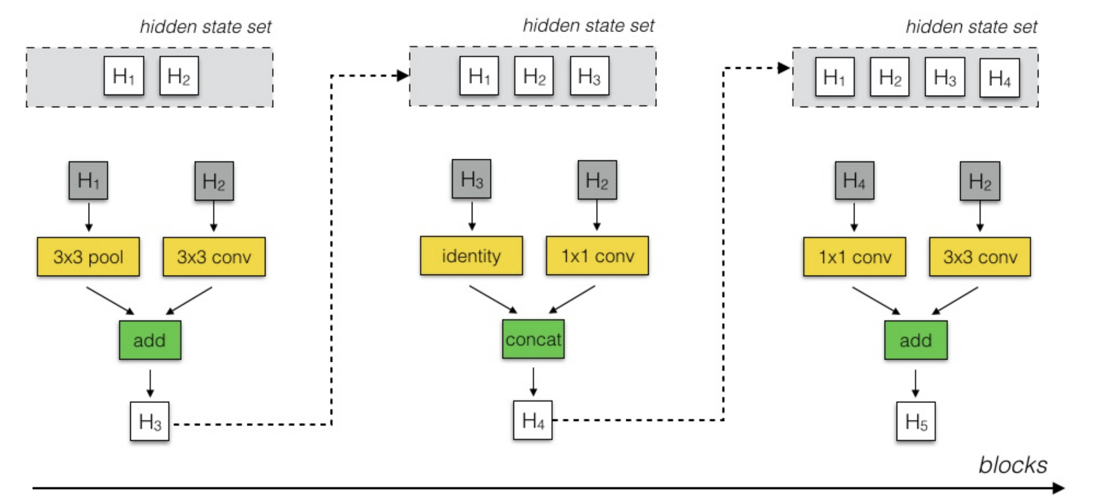- 아키텍처가 여러 block으로 이루어져 있는데, 각 block 마다 다양하고 구성할 수 있다. (hierarchical search space)