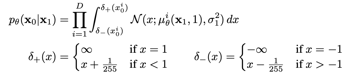 - L_0: Reverse Process에서 x1 → x0 복원 확률 평가