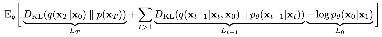 - L_t-1: q(x_t-1 | x_t, x_0) 과 p_theta(x_t-1 | x_t) 비교
