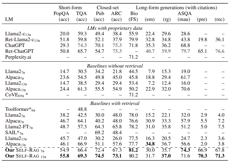 6. SELF-RAG 실험 결과