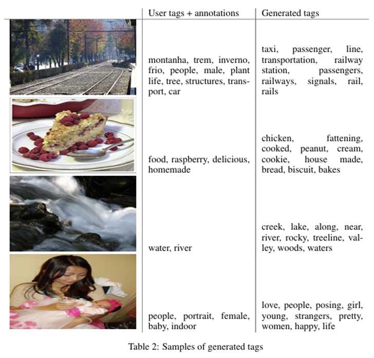 MIR Flickr 25,000 dataset(한 이미지 당 평균 9개 tag 가지고 있는 데이터 셋)를 활용한다. CGAN과 language model을 사용해서 tag 이미지와 user generated metadata(사람이 이미지의 객체를 자연어로 설명하는 방법에 근접하고 각 사용자마다 표현하는 어휘가 다르기에 유용한 실험)를 포함한다.