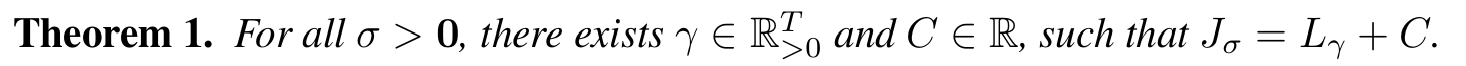 $J_{\sigma}$의 정의를 보면 $\sigma$에 따라 목적 함수가 다르기 때문에 다른 모델이 학습되어야 하는 것처럼 보인다. 하지만 아래의 정리에 의해 $J_{\sigma}$와 $L_{\gamma}$가 동일한 $\gamma$가 존재함을 알 수 있다. 증명은 논문을 참조하면 된다.