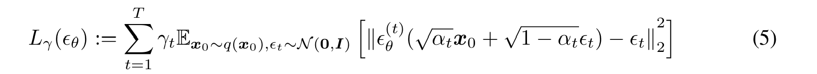 $\gamma$는 $\alpha_{1:T}$에 의존하는 양수 계수이고 DDPM에서는 생성 성능을 최대화하기 위해 1로 설정해 두었다.