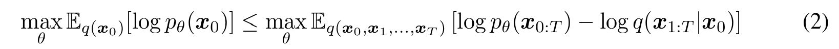 DDPM의 내용이다. DDPM에서는 데이터의 분포 $ q(x_0) $가 주어질 때 모델 분포 $ p_{\theta}(x_0) $가 $ q(x_0) $에 근사하도록 학습한다.