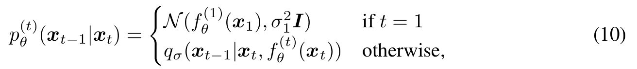 논문에서 DDIM과 DDPM에 accelerated generation process를 적용하기 위해서 10번 식에 약간의 변화를 주었다.