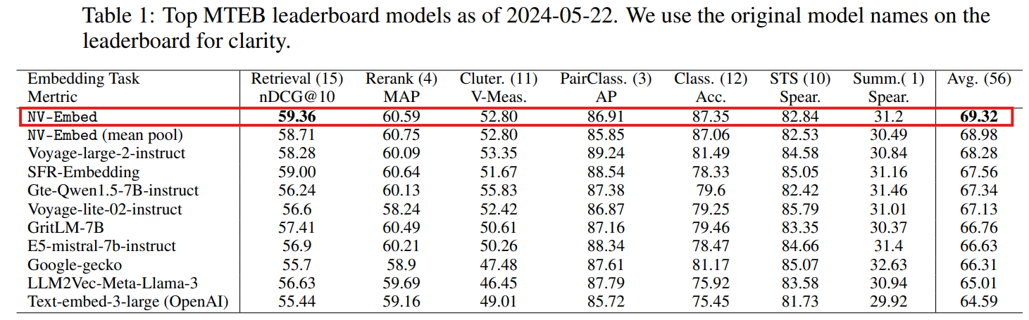 - 논문 제목: NV-Embed: Improved Techniques for Training Decoder Models for General Text Embeddings