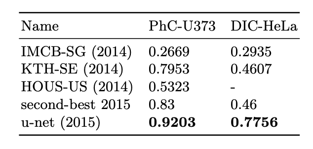 - DIC-HeLa: 편평한 유리 위의 HeLa 세포를 차등 간섭 대비 현미경으로 촬영한 데이터- 평균 IOU 77.5%