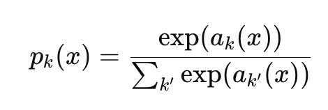 - ak(x: 픽셀 에서 클래스 k의 활성값