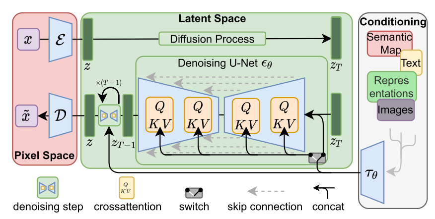 - 이미지 x의 diffusion model 대신 표현 z=E(x)의 diffusion model을 학습한다 (E는 고정).