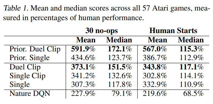 이 논문의 실험에선 dueling network를 DQN, DDQN, prioritized replay 등등에 적용시켜 성능이 향상됨을 보였다.