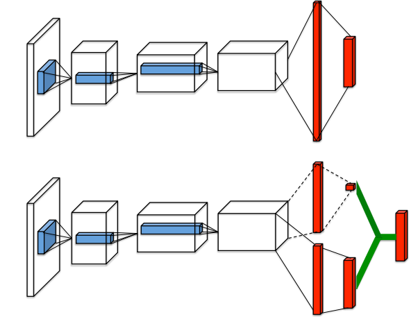 dueling architecture은 state value의 representation과 state-dependant action advantage를 분리한다. 이 아키텍처는 두 개의 stream으로 각각 value와 advantage function을 표현하는데, 이 두 stream은 convolutional feature learning module을 공유한다.