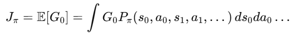 * ∫𝑑𝑠0𝑑𝑎0 …: 상태와 행동의 모든 가능한 경우를 고려해 기대값을 계산하는 과정