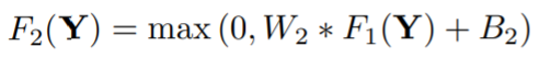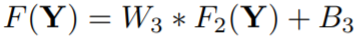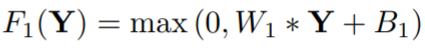인풋 이미지 Y에 Conv 필터를 통과시켜서 feature map인 W*Y를 만들고, bias B를 더한 뒤에, ReLU 함수(= 0과 0이 아닌 값 중 max를 고르는 함수)를 통과시켜 최종 매핑된 feature map F(Y)를 만듭니다. 결론적으로 우리가 알고 있는 컨볼루션 과정과 같다는 걸 알 수 있습니다.