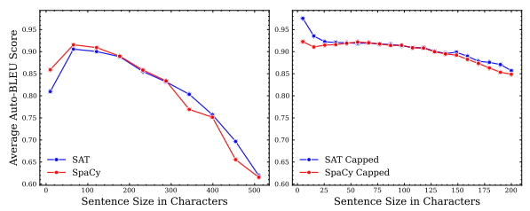 SaT Capped: 문장 길이를 200자로 제한해 긴 문장에서 발생하는 문제를 완화.
